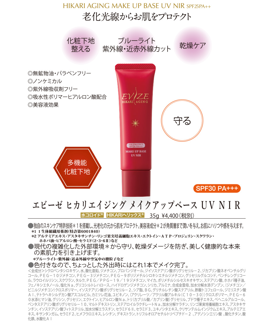 メイクアップベース UV NIR 35g SPF30 PA+++ 35g 定価:4,800円(税別)